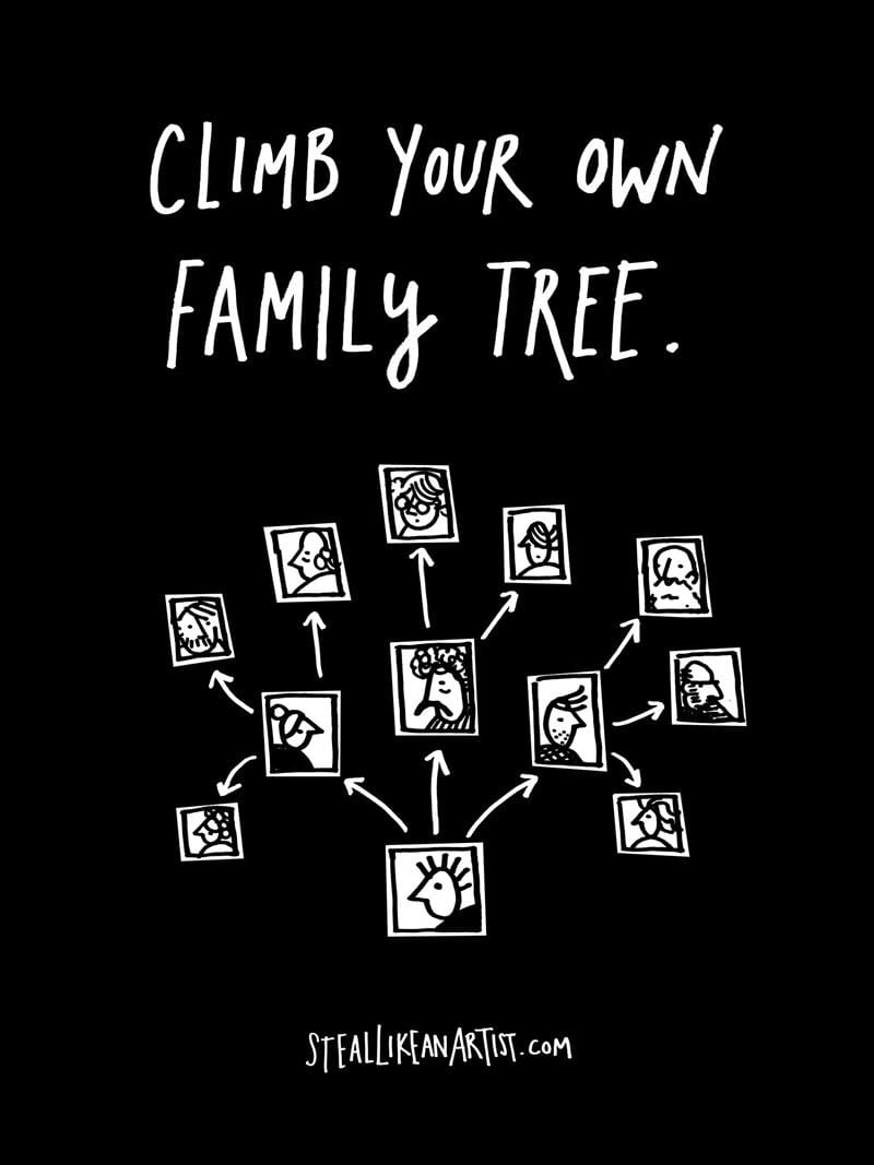 Así que ahí te va un ejercicio para hacer tu propio árbol genealógico, de acuerdo al libro de Steal Like an Artist:
